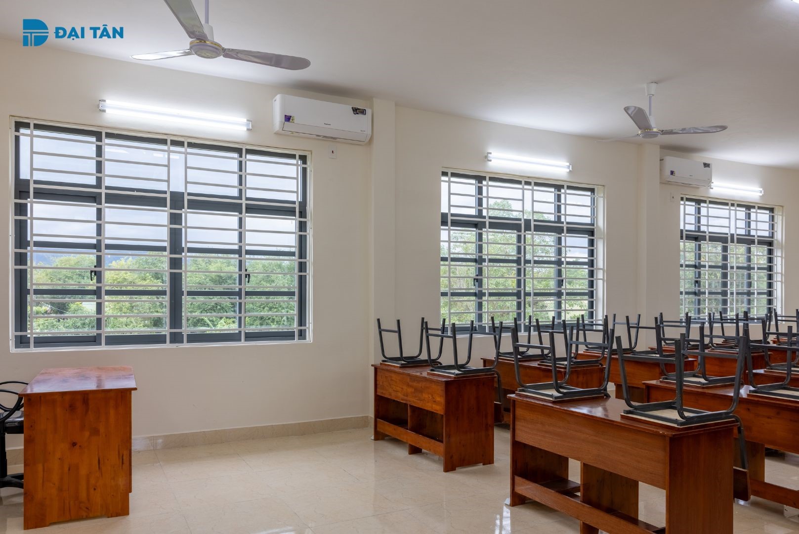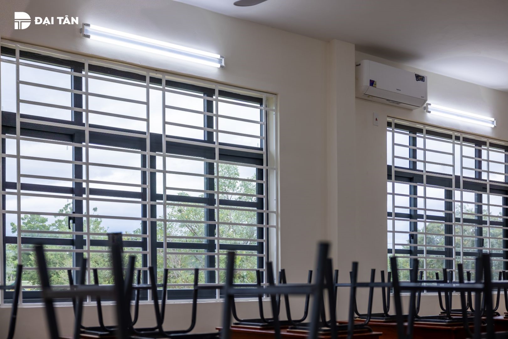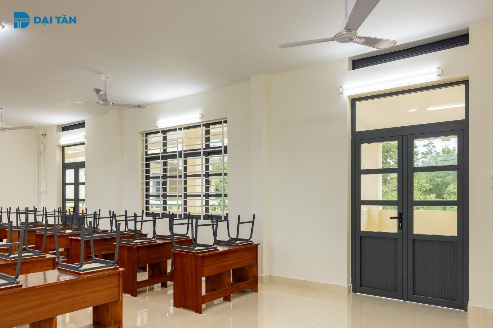 Những bộ cửa nhôm Đại Tân không chỉ tối ưu công năng, an toàn và tiện nghi mà còn đáp ứng được yêu cầu về thẩm mỹ. Với gam màu xám kết hợp cùng thiết kế ô cửa vuông, cửa nhôm Đại Tân mang đến cảm giác vững chãi, hiện đại, cũng như lấy sáng được tối đa cho không gian lớp học, tạo nên môi trường học tập lý tưởng cho các em học sinh.