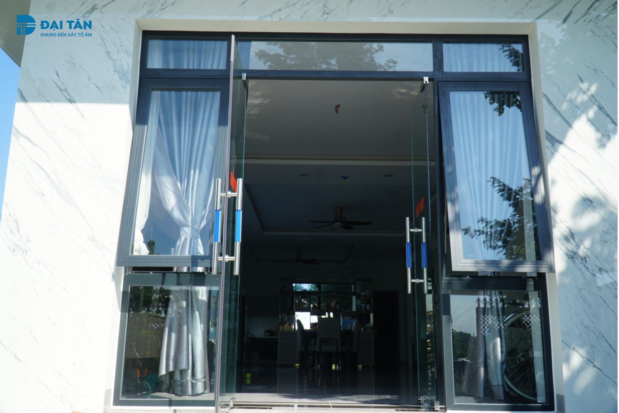 Công trình sử dụng màu sơn Xám Ánh Kim (Bà Rịa – Vũng Tàu) đã được chủ nhà chứng thực: “Màu sắc và lớp ánh kim của gam màu này vẫn mịn màng và bền đẹp sau hơn 1 năm sử dụng. Với vị trí cách biển chỉ 2km theo đường chim bay, toàn bộ các mặt tiếp xúc nắng và gió biển của bộ cửa vẫn giữ được màu sắc như lúc thi công.